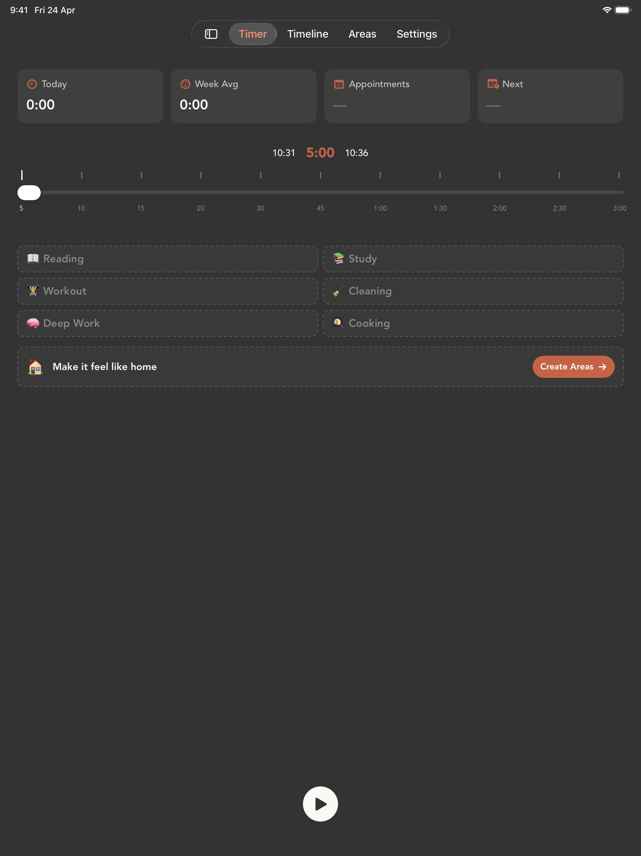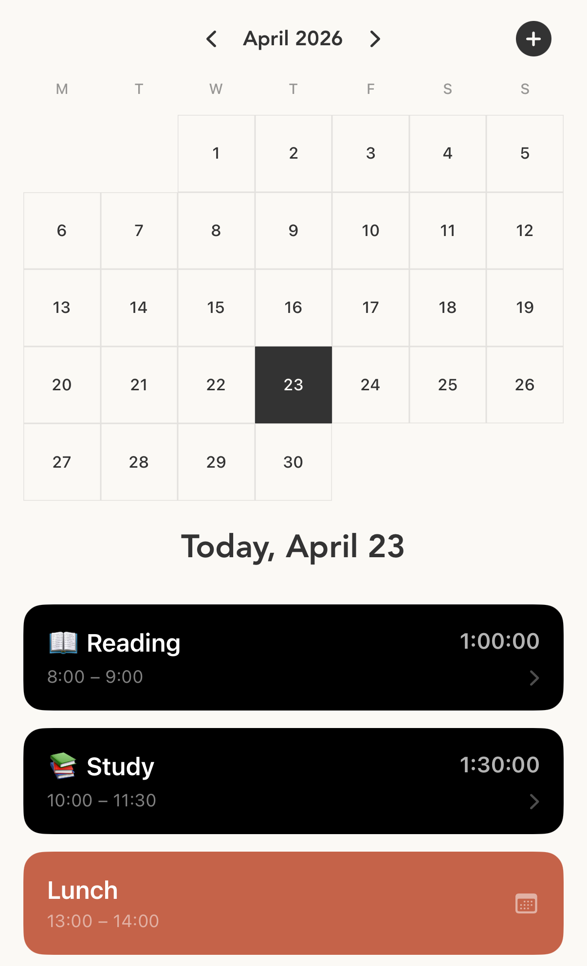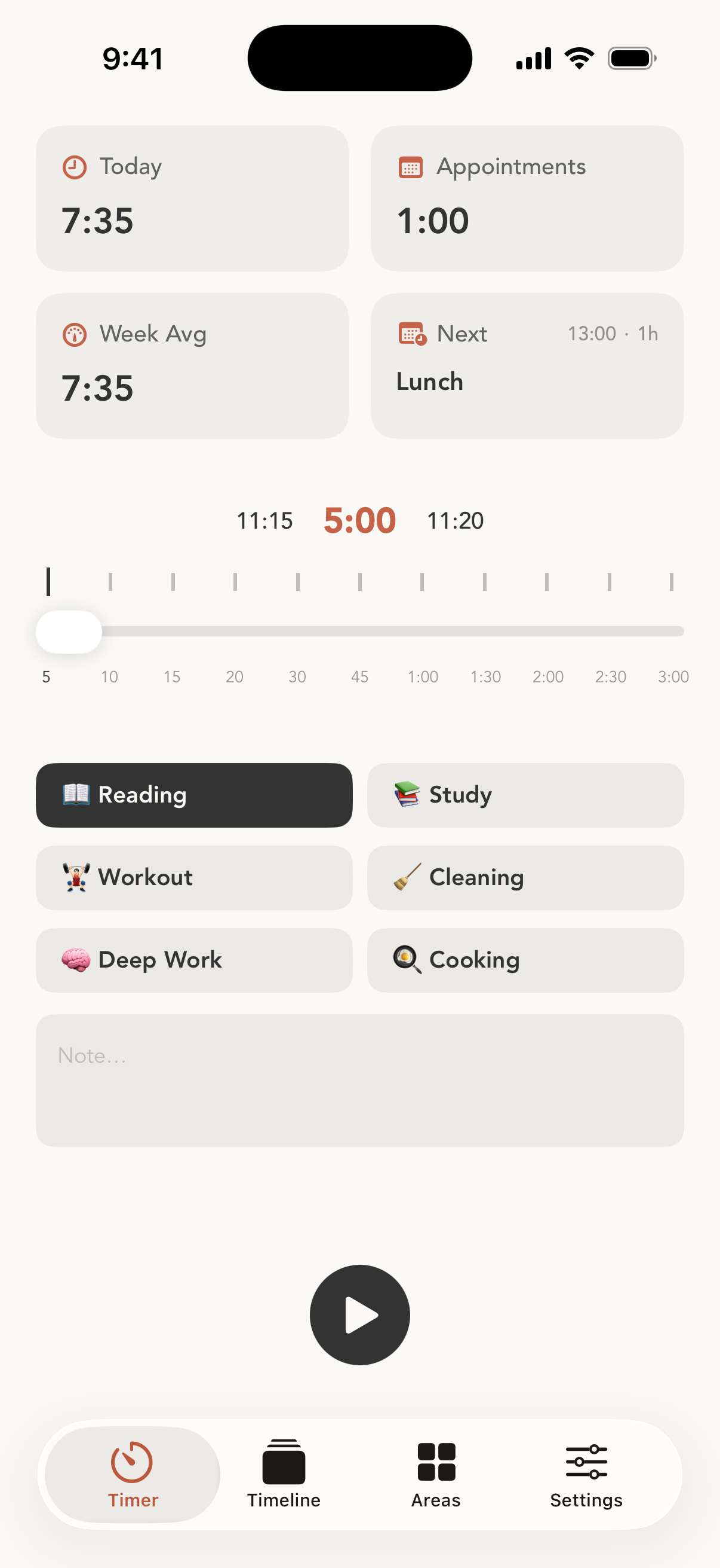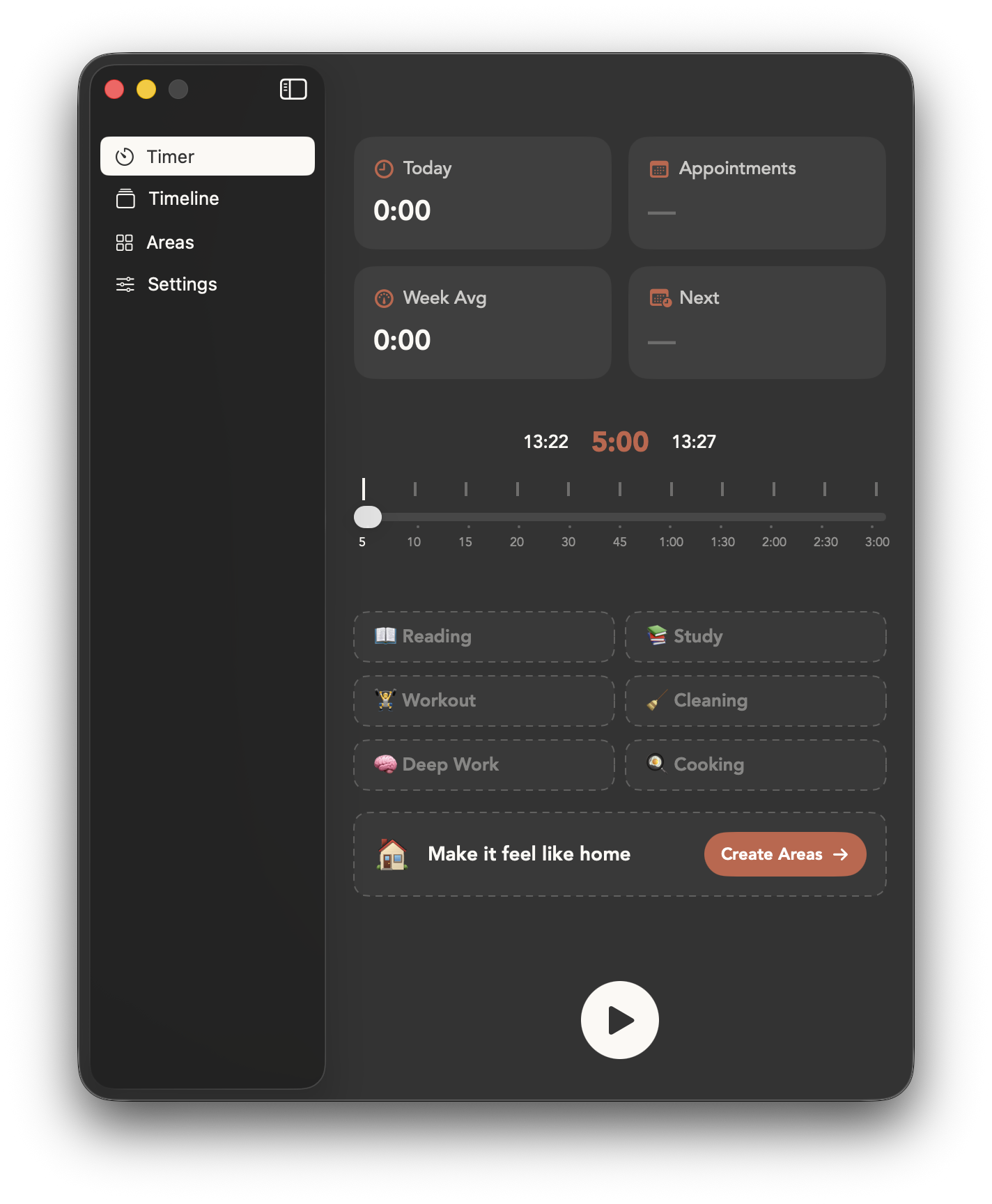 Light & dark, follows your systemExport anywhere — CSV & JSONDuration presets, tuned to your rhythmPrivate by design — no accounts, no tracking